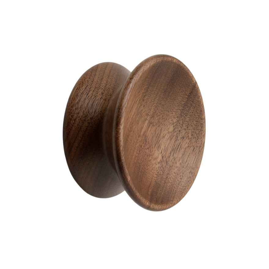 Semblable à un yoyo, le bouton de meuble Billy noyer laqué existe uniquement en noyer laqué et a un diamètre de 56 mm.