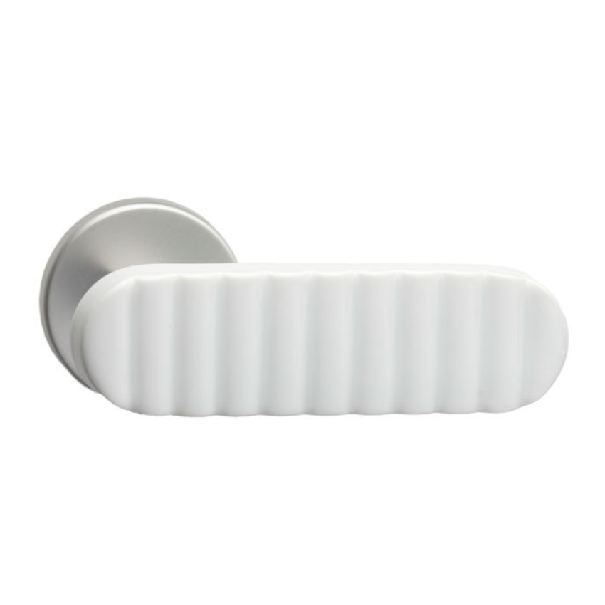 Paire de Poignées de portes Cannelées Porcelaine Blanc
